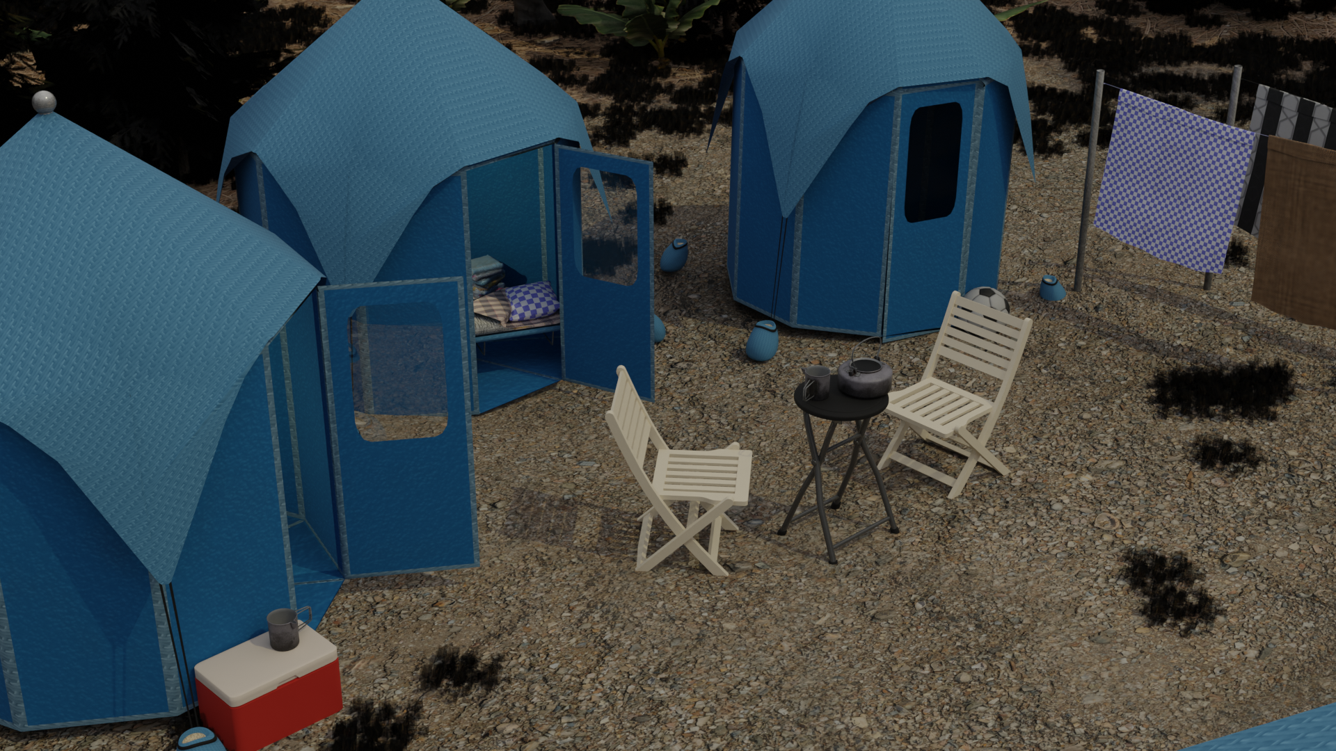 For this project, my groupmates and I were tasked with researching a contemporary issue and designing something to address that issue. We focused on the increasing severity of natural disasters such as hurricanes due to global warming and created a durable, portable, waterproof emergency tent for evacuees. For my part of the project, I created a 3D scene illustrating how these tents might be used in evacuation zones. I worked with Jessica Clark on this project. Jessica mide the model of the blue tents.