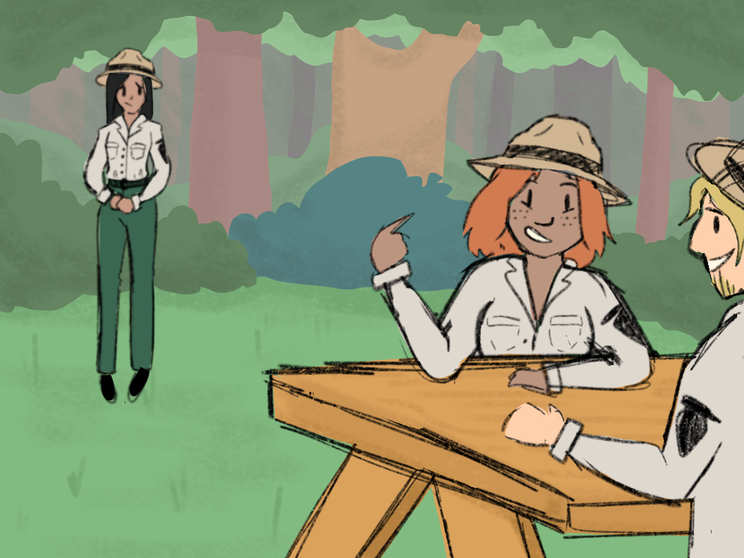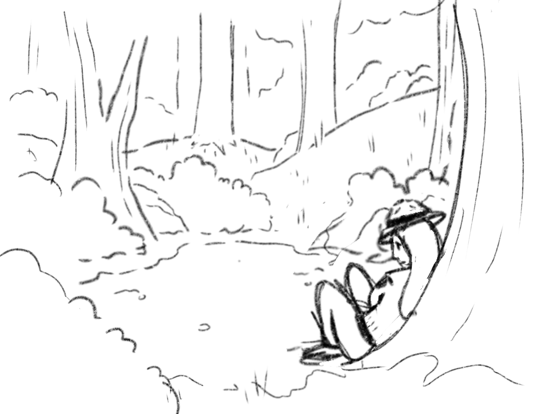 I developed the prompt “What if a park ranger found a magical creature in the woods and had to protect it from the outside world.” into a full story reel using story spines, thumbnails, storyboards, and audio.